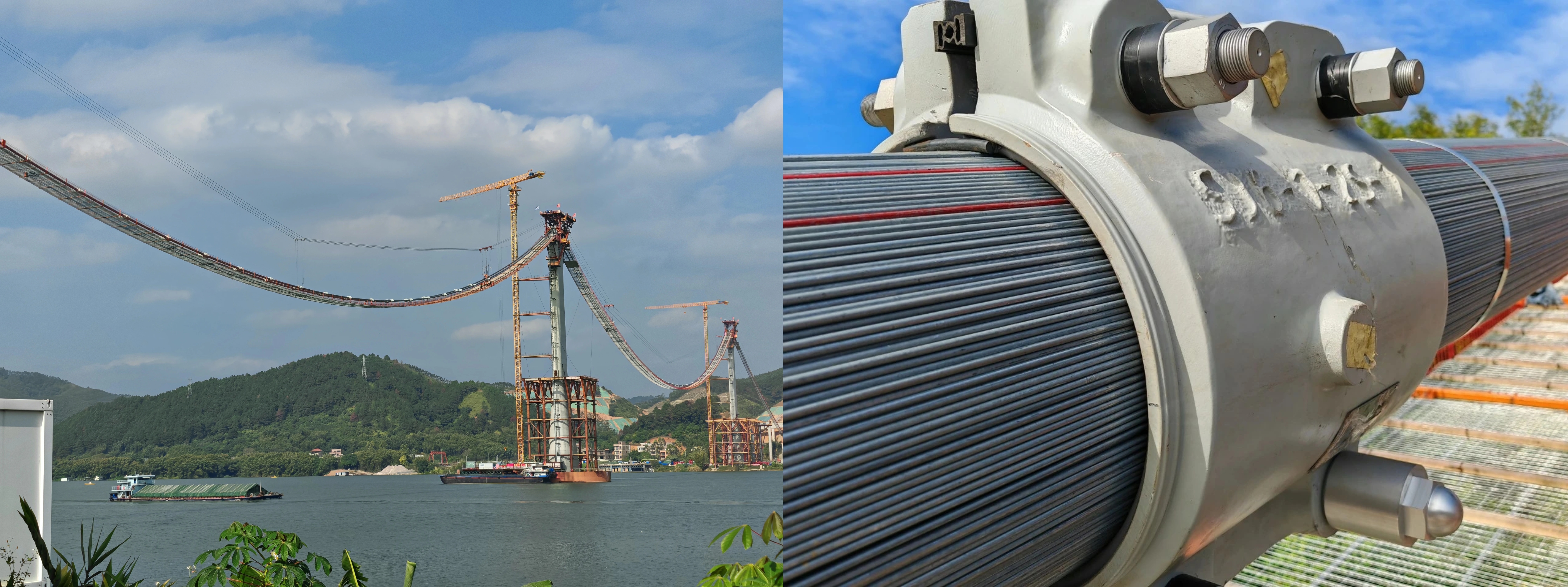 日前,隨著蒼容潯江大橋北岸容縣側主塔區域最后一套索夾成功安裝,中國船舶武漢船機參建的蒼容潯江大橋已完成上部結構安裝,即將進入鋼梁架設階段。