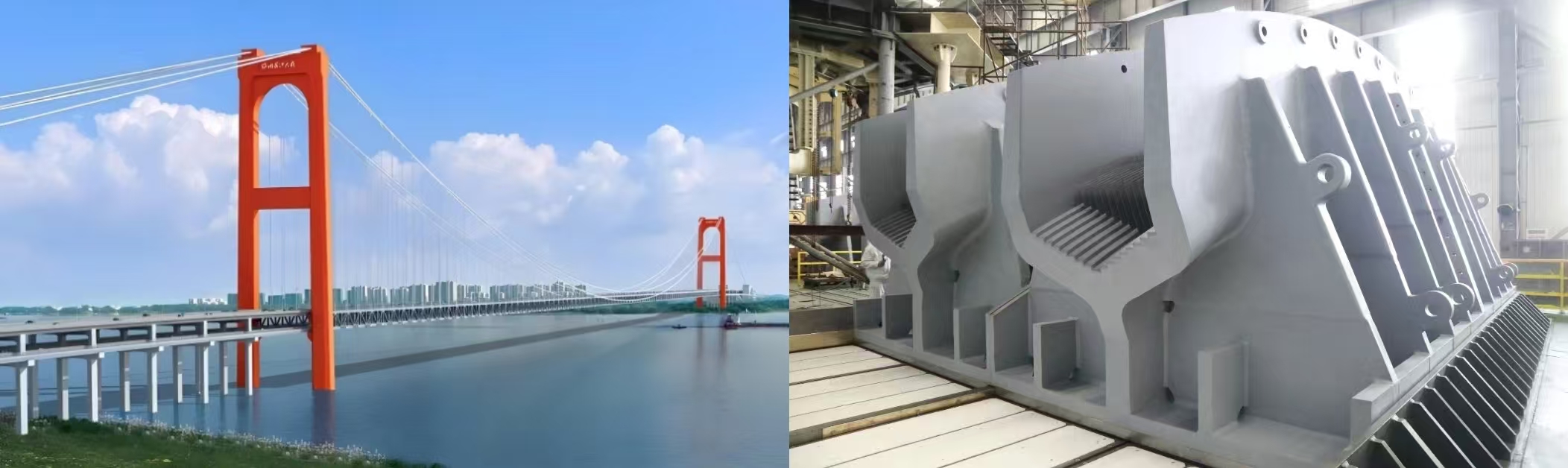 新興產(chǎn)業(yè)之懸索橋索鞍索夾:天塹通信息賦能,品質(zhì)建設(shè)中國橋。武漢船機(jī)公司是國內(nèi)建造大跨度懸索橋索鞍索夾最具實(shí)力的企業(yè)之一。公司以加快新一代信息技術(shù)與制造業(yè)深度融合為主線,發(fā)揮重型起吊設(shè)備和大型數(shù)控落地鏜銑床等設(shè)備優(yōu)勢(shì),大力推進(jìn)懸索橋索鞍索夾綠色、智能制造技術(shù)應(yīng)用和發(fā)展進(jìn)步。2024年以來,公司相繼承接了張靖皋大橋、李埠大橋、哈爾濱松花江特大橋、廣東獅子洋大橋等多個(gè)項(xiàng)目的索鞍索夾,為助力打造國家級(jí)綠色示范工程和國家品質(zhì)工程,打造國民經(jīng)濟(jì)建設(shè)和我國橋梁事業(yè)的健康發(fā)展進(jìn)步貢獻(xiàn)了力量。